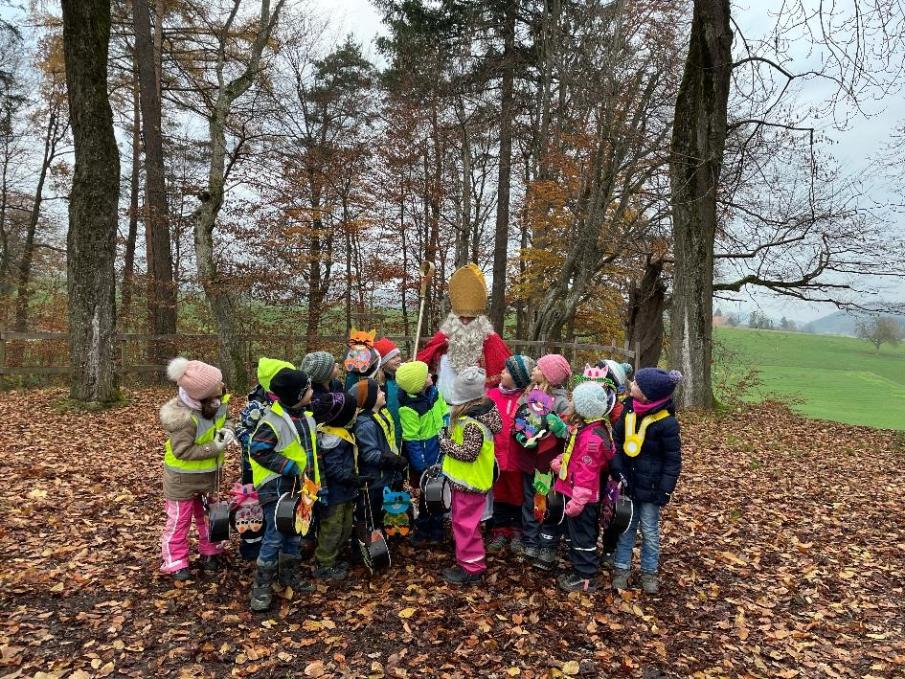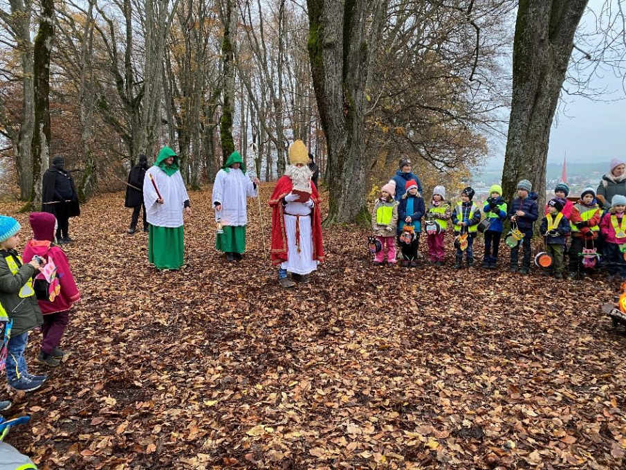 Passend zum Jahresthema machten sich viele Kinder mit einer Kater Zingaro Laterne auf den Weg in den Wald. Dort fanden sie ein Feuer vor aber keinen Samichlaus. Das kräftige Rufen der Basisstufenkinder hat den Samichlaus und seine Helfer angelockt. Der Samichlaus erzählte eine herzerwärmende Geschichte vom besonderen Sternguetzli. Anschliessend konnten alle Kinder gemeinsam den gelernten Vers vortragen und voller Freude das Samichlaus-Lied vorsingen. Im Anschluss gab es ein Foto mit dem Samichlaus und zurück in der Basisstufe ein feines Samichlaus-Znüni. Die Kinder haben den Morgen mit dem Samichlaus sehr genossen.