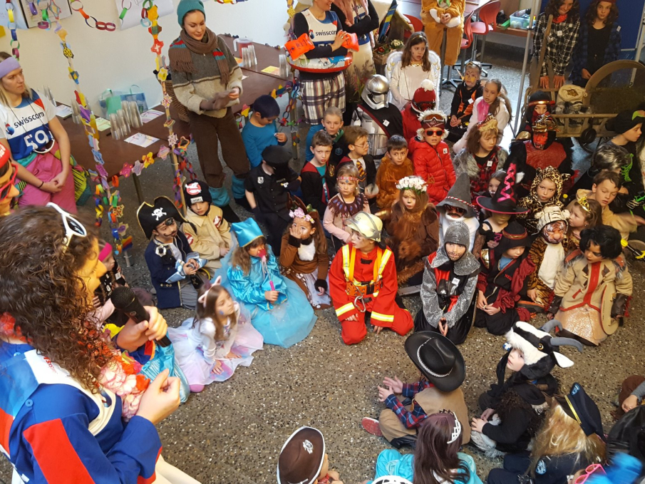 Sportarten-Pantomime und dem Après-Ski-Hits erraten auf die Schulfasnacht ein. Danach