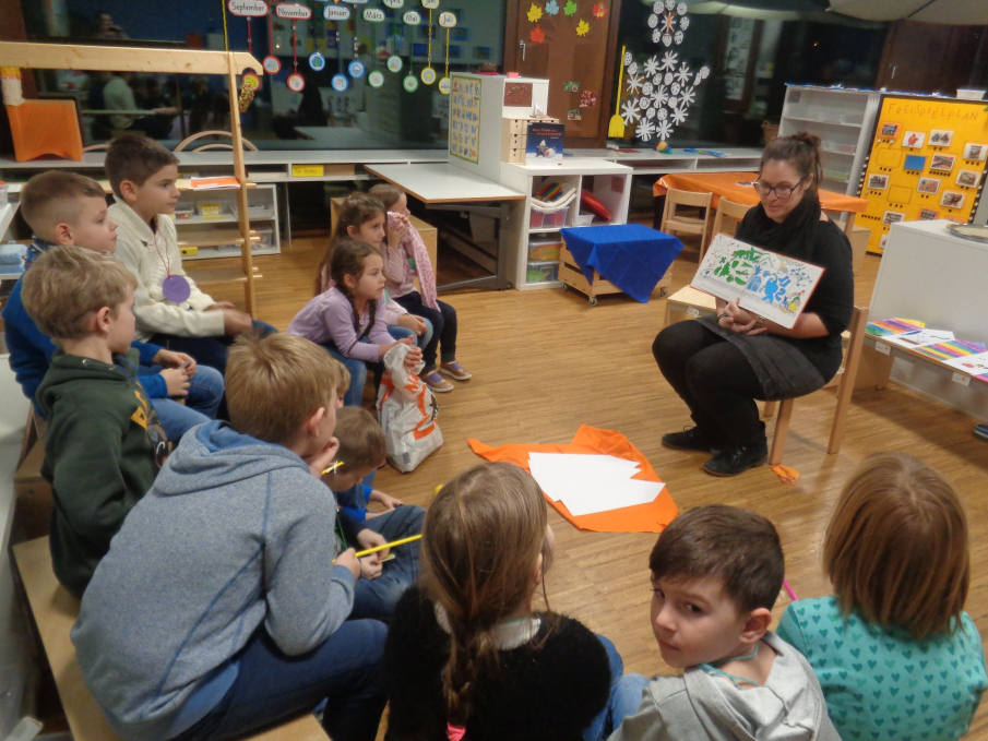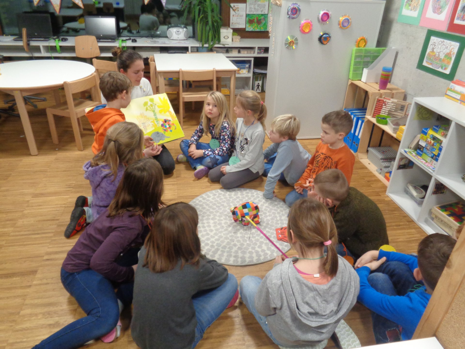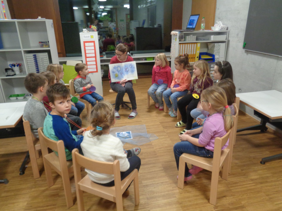 Im Voraus konnten die Kinder aus einem reichhaltigen Programm zum Thema «Farben» zwei Geschichten, die sie hören möchten, auswählen. Die Geschichten wurden von den Lehrpersonen in deren Schulzimmern vorgetragen. Zuvor gab es auf dem Pausenplatz des Primarschulhauses passend zu Geschichten eine würzige Buchstabensuppe, zu der auch die Eltern eigeladen waren.