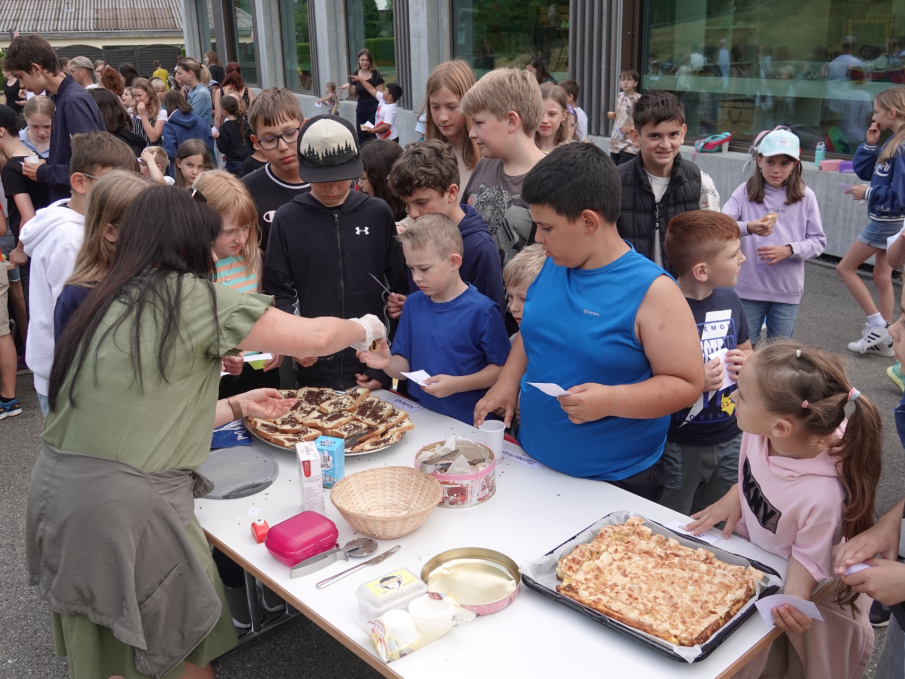 Am Freitag, 23. Juni verwandelte sich der Pausenplatz der Basisstufe Beromünster in ein grosses Streetfoodfestival. Als Abschluss der Projektwoche „Kunterbunte Erde“ konnten die Kinder aus Beromünster und ihre Eltern aus etwa 20 verschiedenen Ländern die vielfältigen Spezialitäten kosten. Liebevoll präsentiert und immer mit der jeweiligen Landesfahne markiert, konnte man sich durch die ganze Welt verköstigen.
