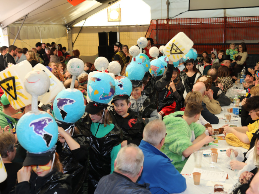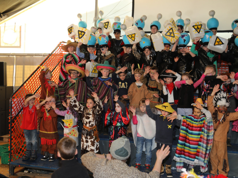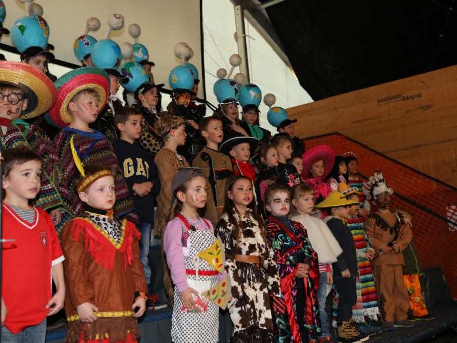 An der Dorffasnacht in Schwarzenbach traten die Schulkinder als Weltenbürger auf. Häbed Sorg zo dem Planet...damit auch noch in vielen Jahren Fasnacht gefeiert werden kann.