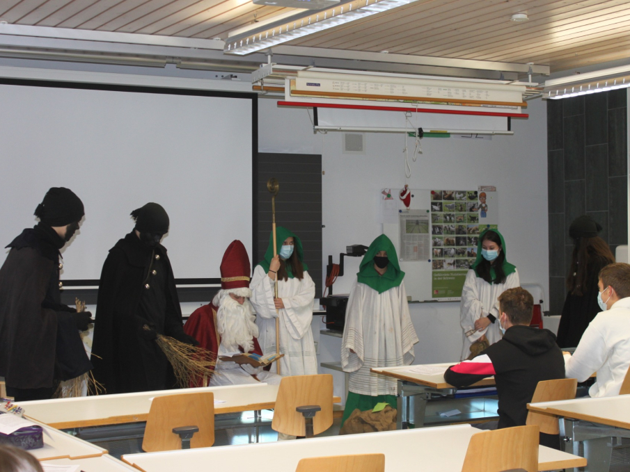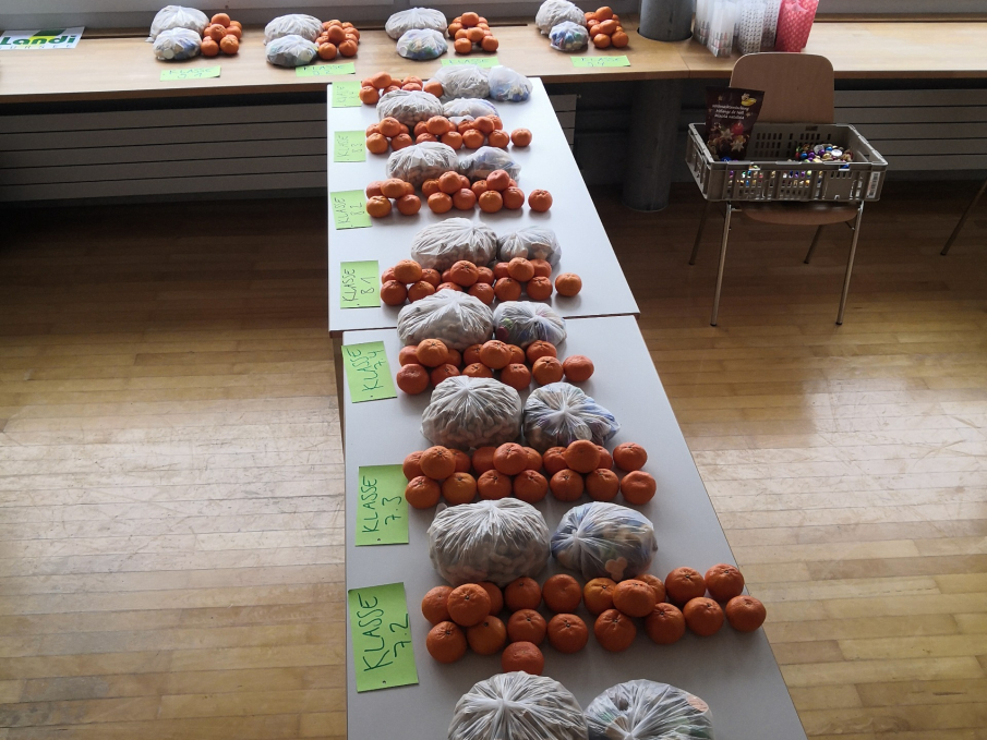 In emsiger Vorarbeit haben wir einen Einsatzplan für unsere beiden Chlausgruppen erstellt, die Klassenlehrpersonen um Rückmeldungen über ihre Schülerinnen und Schüler gebeten und Spenden für das Chlaussäckli gesammelt. Vielen Dank dafür an die tatkräftige Unterstützung aus der Region (Landi Beromünster, Voi Beromünster und Volg Rickenbach) Aber nicht nur mit Naturalien wurden wir unterstützt, auch der authentische Auftritt der beiden Samichlaus-Gruppen konnte dank der Unterstützung der Samichlaus-Gesellschaft Beromünster und der Samichlaus- Gesellschaft Gunzwil stattfinden. Und so wurde am 7.Dezember 2020 vorweihnachtliche Stimmung im Sekundarschulhaus Beromünster spürbar, es schallte lautes Lachen durch die Zimmer und Gänge und das eine oder andere Brämi durfte natürlich nicht fehlen.
