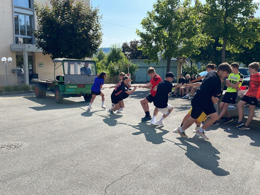 Die Schülerinnen und Schüler der Sekundarschule haben sich am Sporttag 2023 in zwei Wettkämpfen gemessen. An einem Halbtag stand ein Minitriathlon, am anderen Halbtag die «Highlandgames» auf dem Programm. Neben den klassischen Triathlon-Disziplinen Schwimmen, Fahrradfahren und Laufen konnten die Schülerinnen und Schüler ihr Geschick, ihre Kraft und Schnelligkeit u.a. beim «Schilter-Schleppen», «Baumstamm-Parcours», «Holzstamm-Sägen» oder dem «Seilziehen» unter Beweis stellen.